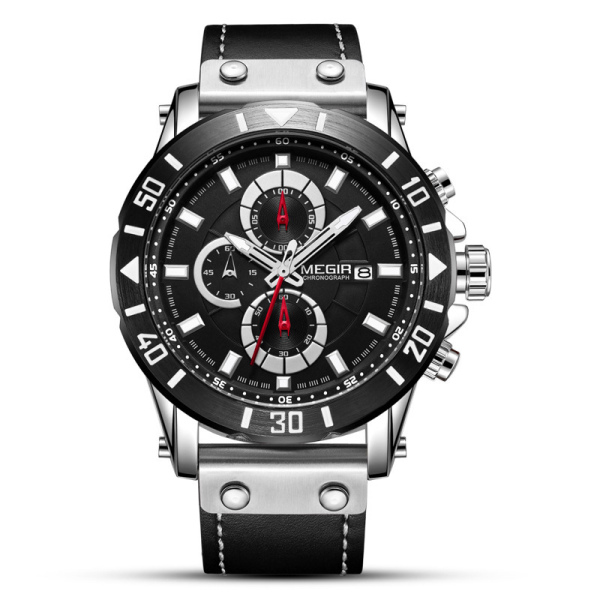 Мужские часы MEGIR созданы для тех, кто ценит брутальный дизайн и практичность. Модель выполнена в популярном стиле «авиатор» с крупным циферблатом, на котором отлично читаются все показатели. Это отличный аксессуар как для повседневной носки, так и для активного отдыха.